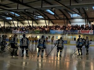 Unter dem Motto “Mission 600” wollte der ESC SoccerZone Steindorf, wie im Vorjahr, mit einem Sweep über den 1. EHC Althofen zu Hause den Sack zu machen. Vor einer atemberaubenden Kulisse von 660 Zusehern, die dem Ruf gefolgt sind, brannte schon vor dem Spiel im wahrsten Sinne des Wortes das Eis. Bei gedimmtem Licht wurden die Spieler der Heimmanschaft einzeln aufs Eis gerufen, begleitet von tosendem Jubel und mit dem Licht von hunderten an die Besucher ausgeteilten “Sternspritzern”. Gänsehaut Feeling pur durchströmte die aus allen Nähten platzende Ossiacherseehalle!
