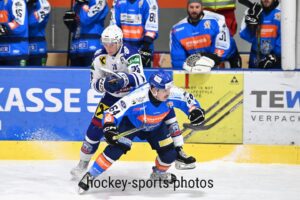 Huben kam wieder überfallsartig aus der Kabine und traf gleich in der 3. Minute zum 0:1. Steindorf erfing sich aber nach einem kurzen Schockmoment und erarbeitet sich langsam mehr Spielanteile. Das Tempo war hoch und es wurde von Anfang an hart um jede Scheibe gekämpft. Plötzlich musste Steindorf eine eineinhalbminütige 3:5 Unterzahl hinnehmen, verteidigte was das Zeug hielt und überstand die Strafen unbeschadet. In Minute 9:15 nutzte der ESC seinerseits eine Überzahl und stellte durch seinen “Sniper” Martin Oraze auf 1:1, Patrick Ratz und Benjamin Petrik sicherten sich die Assistpunkte. Das Spiel ging spannungsgeladen, aber ohne weiteren Treffer in die erste Pause.