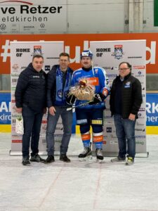Der Sponsor des Abends – MSc Thomas Freunschlag von der Freunschlag ZT GmbH – wählte unsere #64 Fabian Stichauner zum Spieler des Abends.